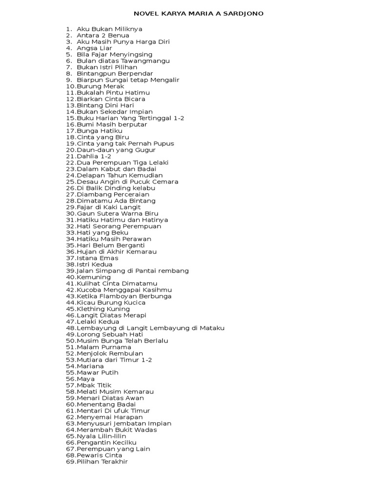 Jual Novel Maria A Sardjono Terlengkap Harga Murah September 2022